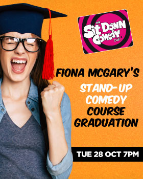 Online ticketing will close at 3:00PM on the day of the event. After this time, tickets will be available for purchase on the door unless sold out prior. The Sit Down Comedy Club is licensed – strictly no admittance to people under 18 years of age. Performer line up is correct at time of publication, however is subject to change without prior notification and at the discretion of management. Performance concepts and language may offend. Filming will be occurring in the venue for this performance. Seating allocated by SDCC depending on booking group sizes and chronological order of bookings. PLEASE NOTE: You may be seated at a table with other booking groups.